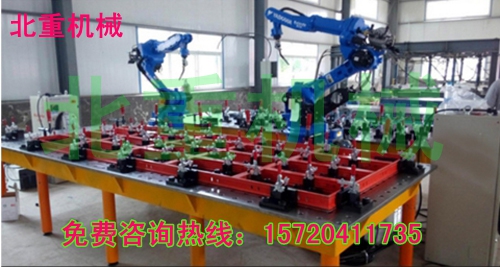 機(jī)器人焊接平臺(tái)的承載能力高,鋼性穩(wěn)定,它的五個(gè)面均加工有規(guī)則的孔,并刻有網(wǎng)線。焊接平臺(tái)可方便地延伸和擴(kuò)展,組合。經(jīng)擴(kuò)展的標(biāo)準(zhǔn)臺(tái)面可模塊化的定位和夾緊直接連接在一起。在安裝、調(diào)整和定位工件過程將柔性三維組合焊接工裝系統(tǒng)的通用功能展示的淋漓盡致,尤其在了大型工件方面的應(yīng)用上。